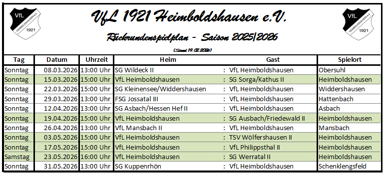 Rückrundenspielplan Saison 2025/26